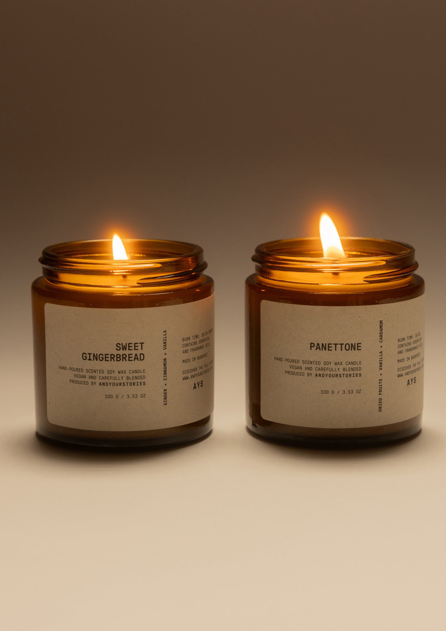 Az Andyourstories gyertyák 100%-ban Európában termesztett szójababból készülnek, károsanyag- és ftalátmentes, prémium illó- és illatolajokkal, valamint nehézfémmentes pamut kanóccal.