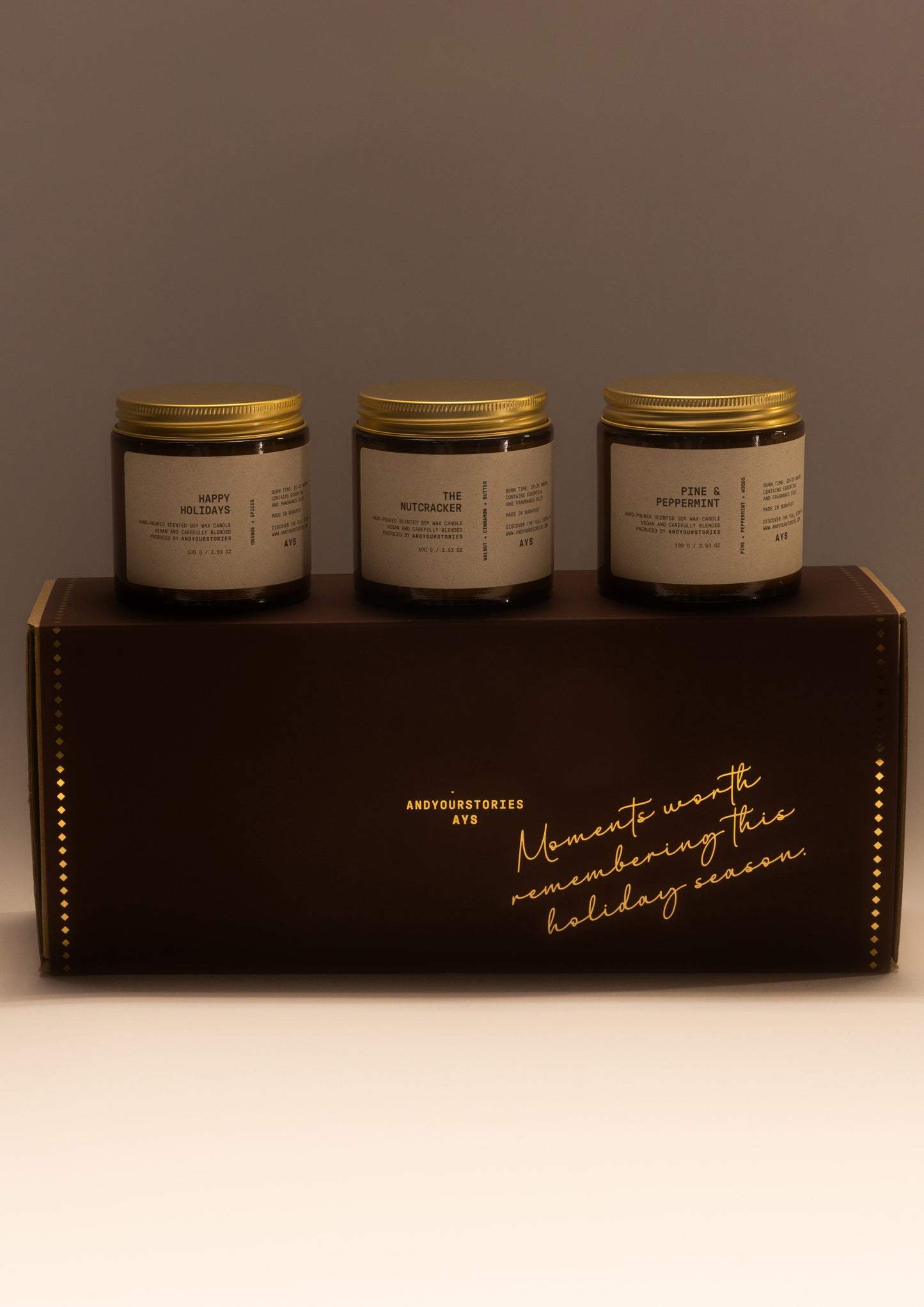 Az Andyourstories gyertyák 100%-ban Európában termesztett szójababból készülnek, károsanyag- és ftalátmentes, prémium illó- és illatolajokkal, valamint nehézfémmentes pamut kanóccal.