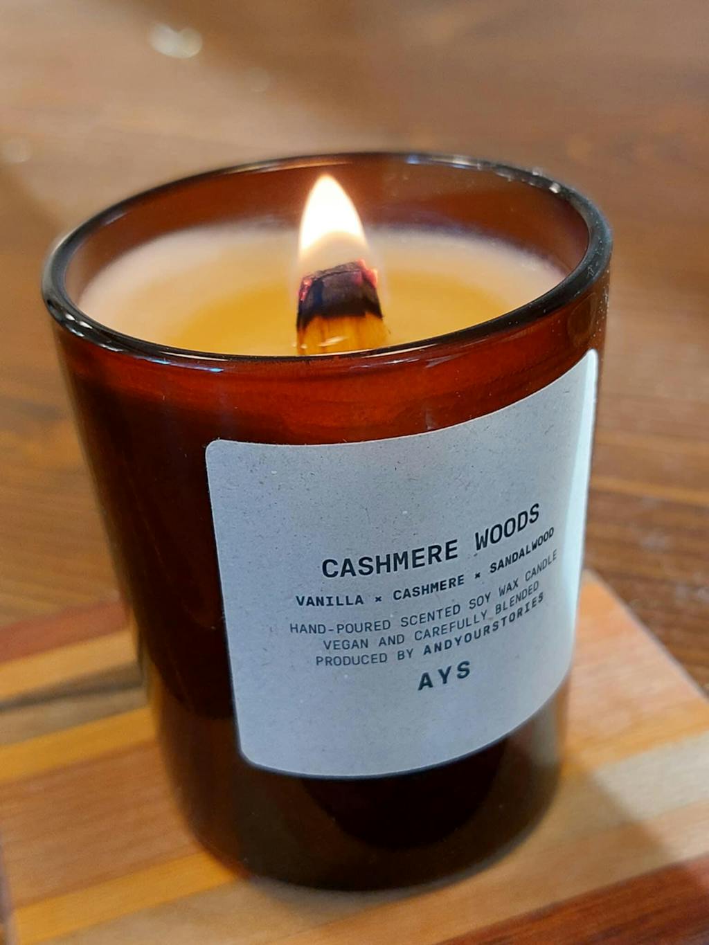 Cashmere Woods – MINI AYS Amber with a crackling wooden wick