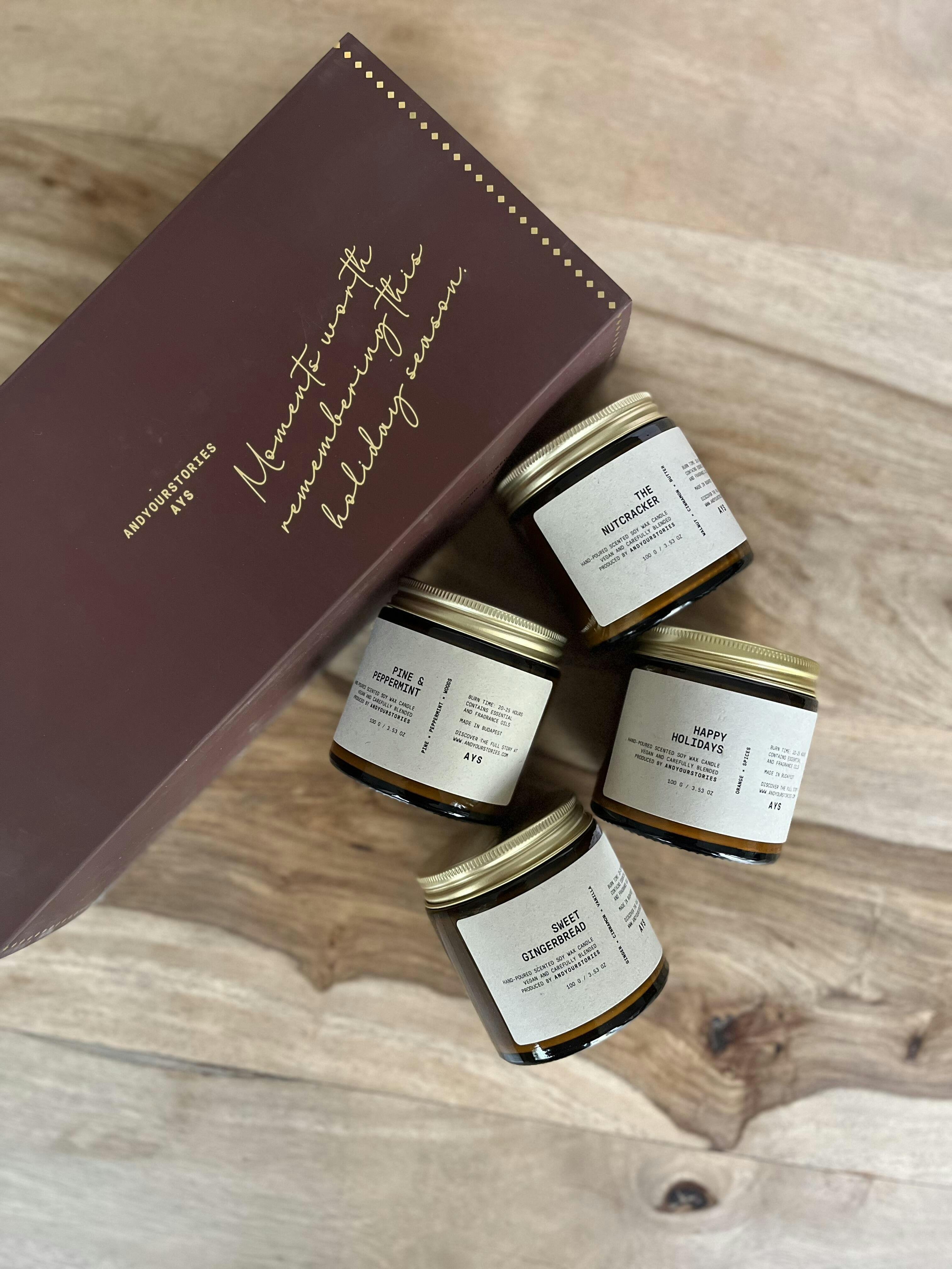 Az Andyourstories sviečky sú vyrobené zo 100 % sójových bôbov pestovaných v Európe, bez škodlivých látok a ftalátov, s prémiovými éterickými a parfumovými olejmi a bezolovnatým bavlneným knôtom.